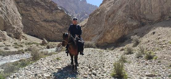 自2019年轉(zhuǎn)改以來,崔帥帥始終堅守在工作崗位上,扎根在帕米爾雪域高原,作為一名漢族民警,為了搞好工作,加強溝通效果,他虛心向牧民群眾學(xué)習(xí)維吾爾語,向所里的少數(shù)民族民警請教,努力提升少數(shù)民族語言溝通能力。為了解轄區(qū)基本情況,及時把黨的路線、方針、政策和國家法律、法規(guī)傳播到交通不便、消息閉塞的牧民群眾當(dāng)中,他經(jīng)常到廢寢忘食的地步去轄區(qū)開展法律宣傳,4年里累計行程6000多公里,累計宣傳黨的政策方針1500余次,發(fā)放宣傳單月4000余份,常常從最東邊的牧民家跑到最西頭的牧民家,每次都要和轄區(qū)群眾進行親切交談,詢問近期狀況,給護邊員交代巡邏任務(wù)。在派出所轄區(qū),哪里有條小溪,哪兒有塊什么樣的石頭,他都了如指掌,對于邊境地區(qū)的地形地貌,氣候變化,也如數(shù)家珍。他始終堅信“權(quán)力是人民給我們的,要為人民用好權(quán)”,要始終以樸實之風(fēng)、坦誠之心去對待轄區(qū)群眾。一身移民藍,一雙黑膠鞋,一年四季徒步在山路上。為了熟悉管區(qū)的每處情況,他經(jīng)常帶著馕和水就踏上了路途,遇到馬和牦牛都難以行走的地方,他就自己背著東西,一步一步走過去。有人和崔帥帥開玩笑說他把邊境線上的石頭都壓碎了。風(fēng)里來,雨里去,日復(fù)一日地深入邊境一線牧民居住點進行治安調(diào)查,扎實開展“掃黑除惡”“驚雷一號”“我為群眾辦實事”等專項活動,確保轄區(qū)的和諧穩(wěn)定。