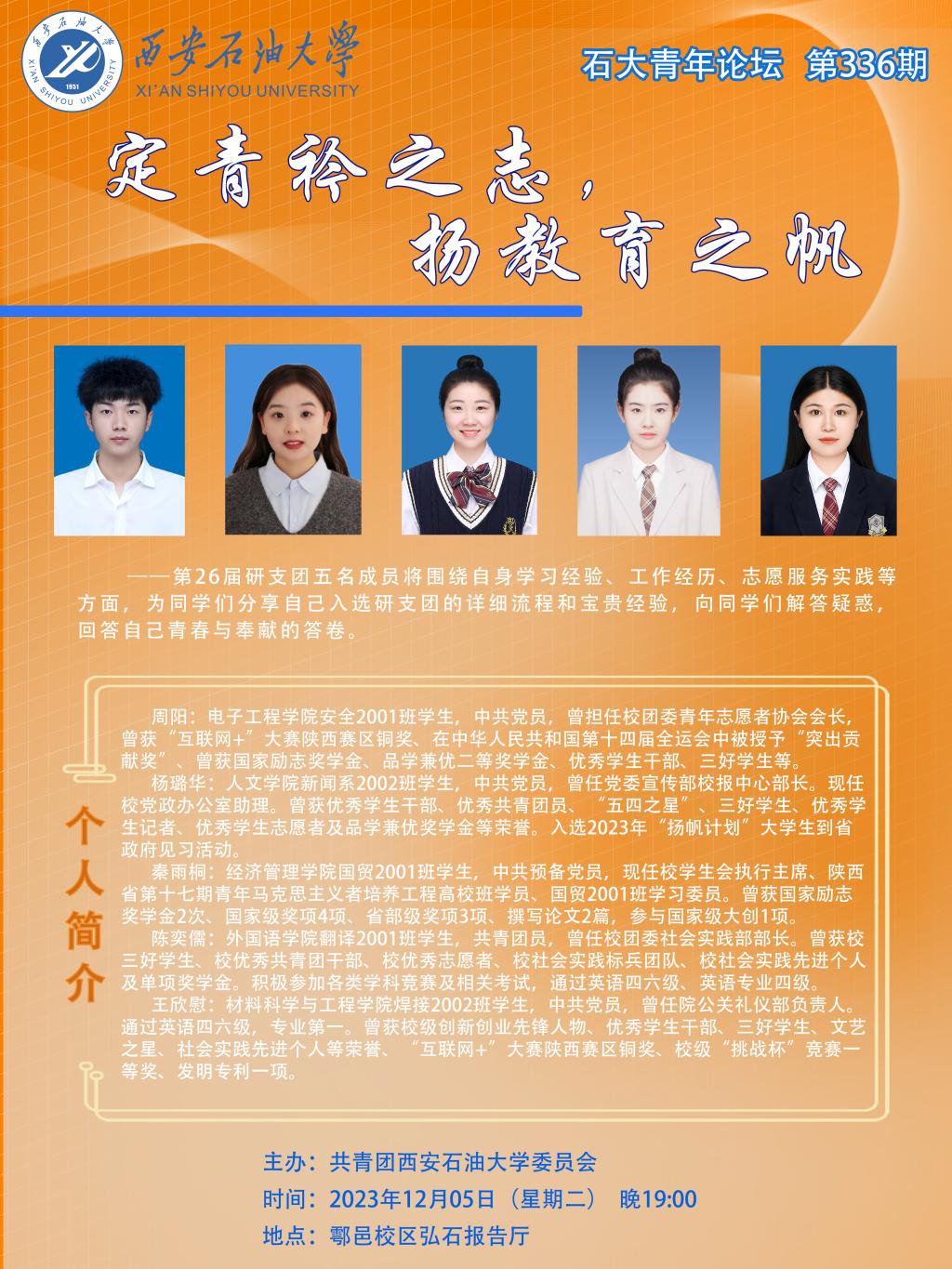 石大青年論壇第336期:定青衿之志,揚(yáng)教育之帆
