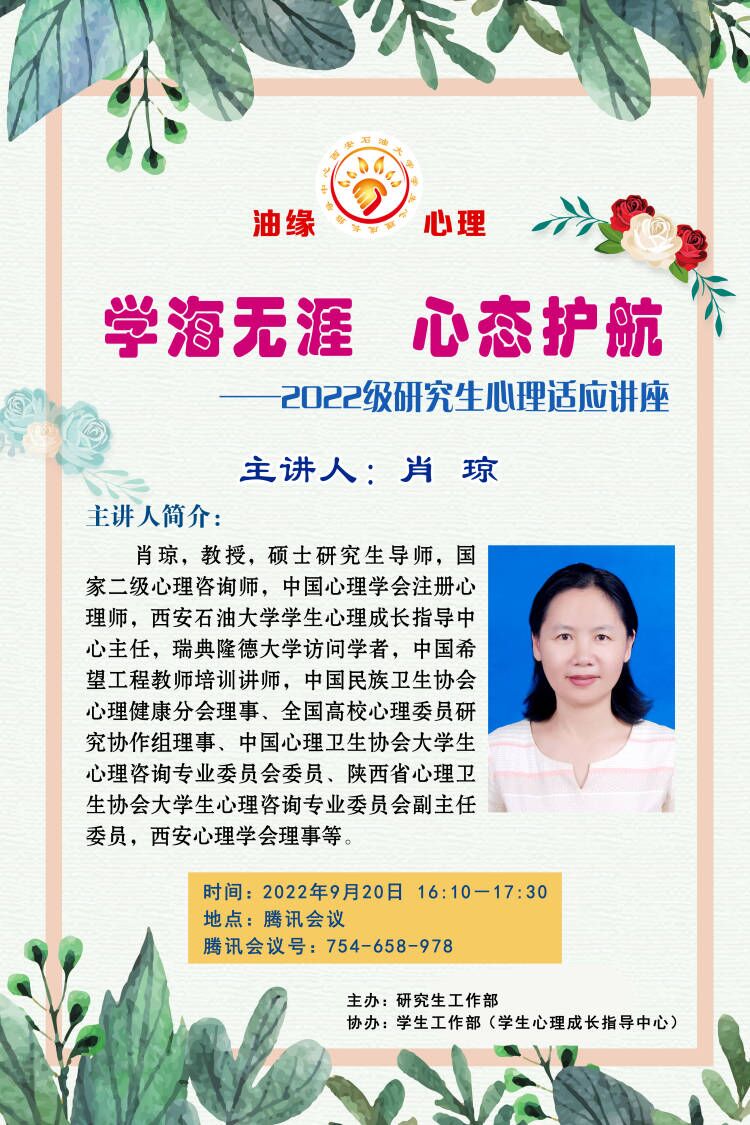 學(xué)海無(wú)涯 心態(tài)護(hù)航——2022級(jí)研究生心理適應(yīng)講座