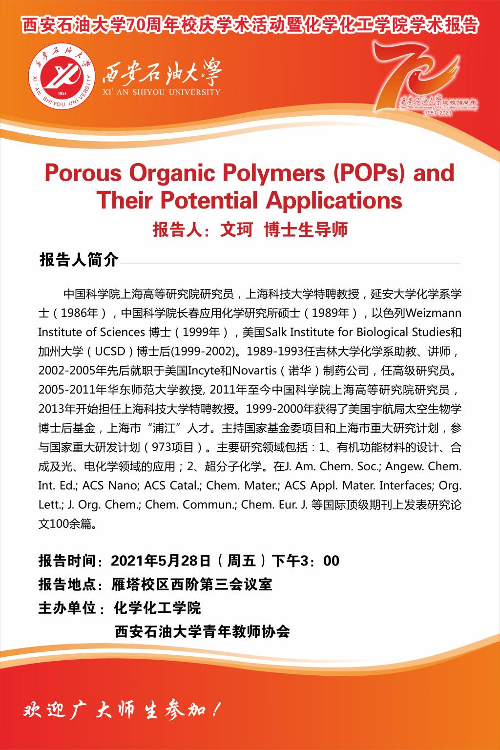 Porous Organic Polymers (POPs) and Their Potential Applications