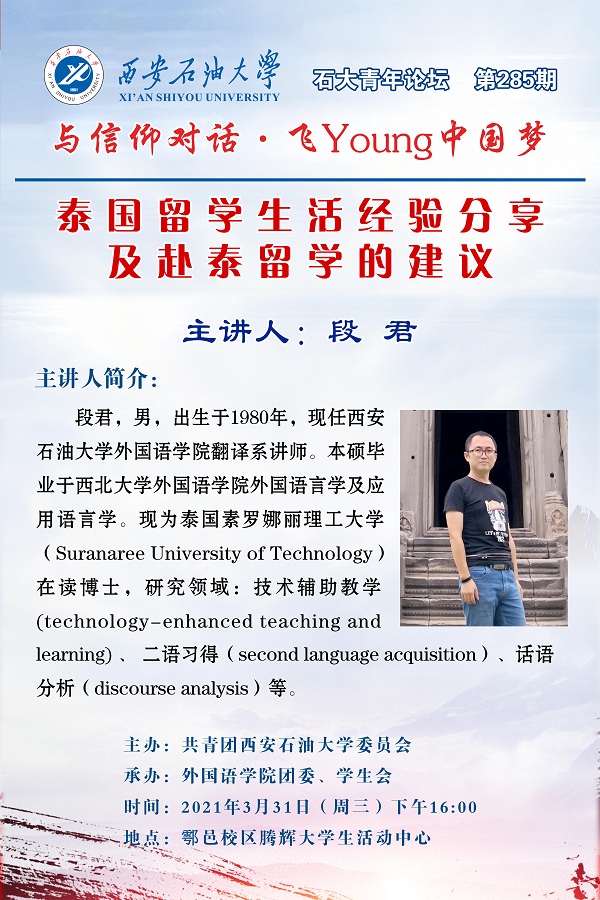 石大青年論壇第285期:泰國留學(xué)生活經(jīng)驗分享及赴泰留學(xué)的建議